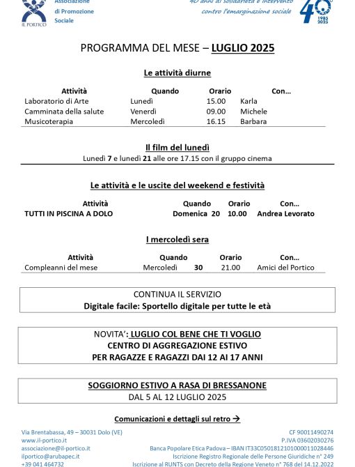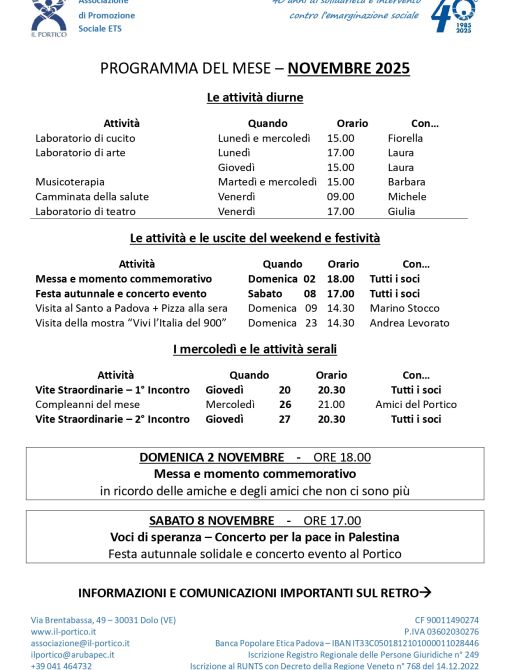 Tieniti aggiornato sugli eventi e novità della nostra Associazione - IL PORTICO
