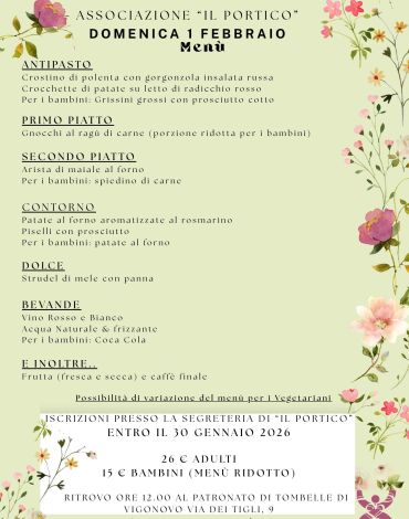 Domenica 1 Febbraio '26 - PRANZO SOCIALE del Portico a TOMBELLE
